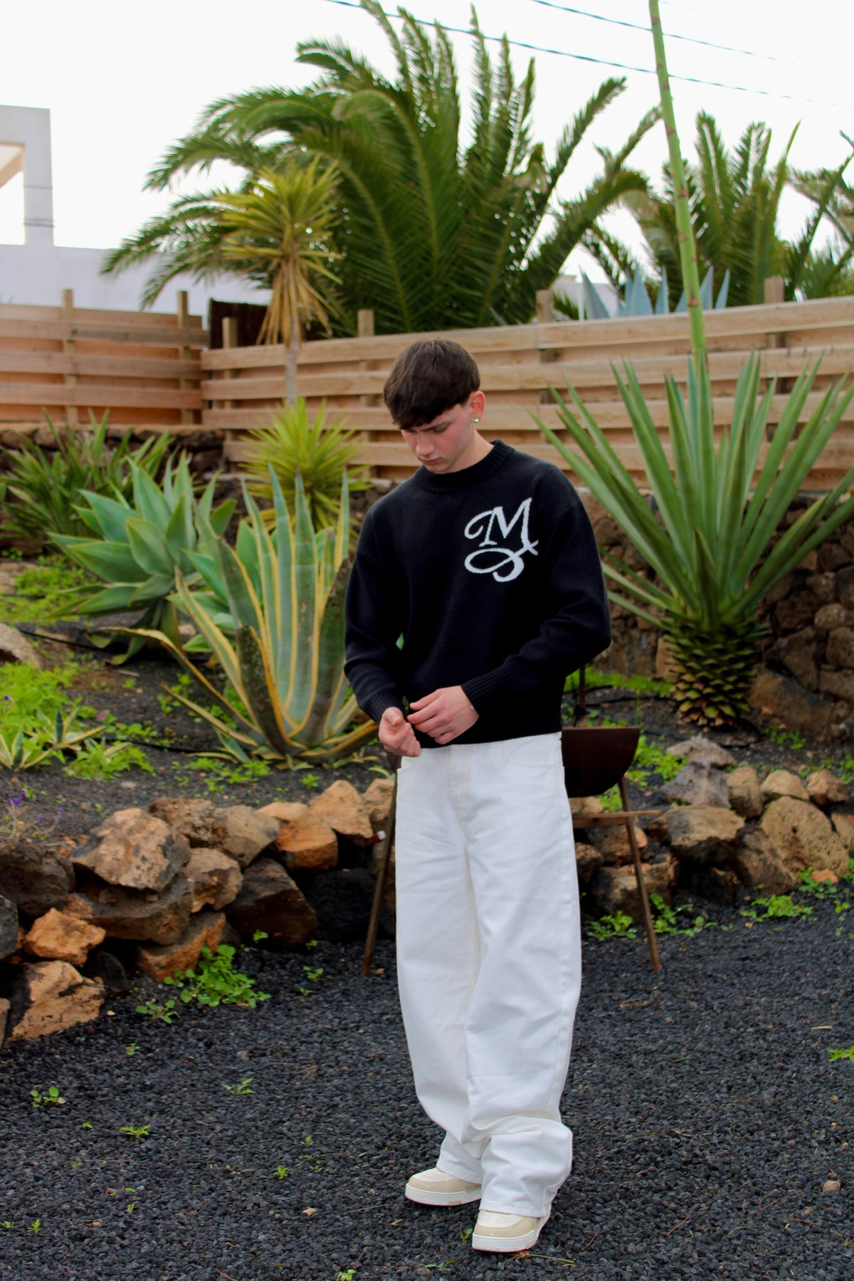 Fit oversize controllato, pensato per creare equilibrio con hoodie e knit.