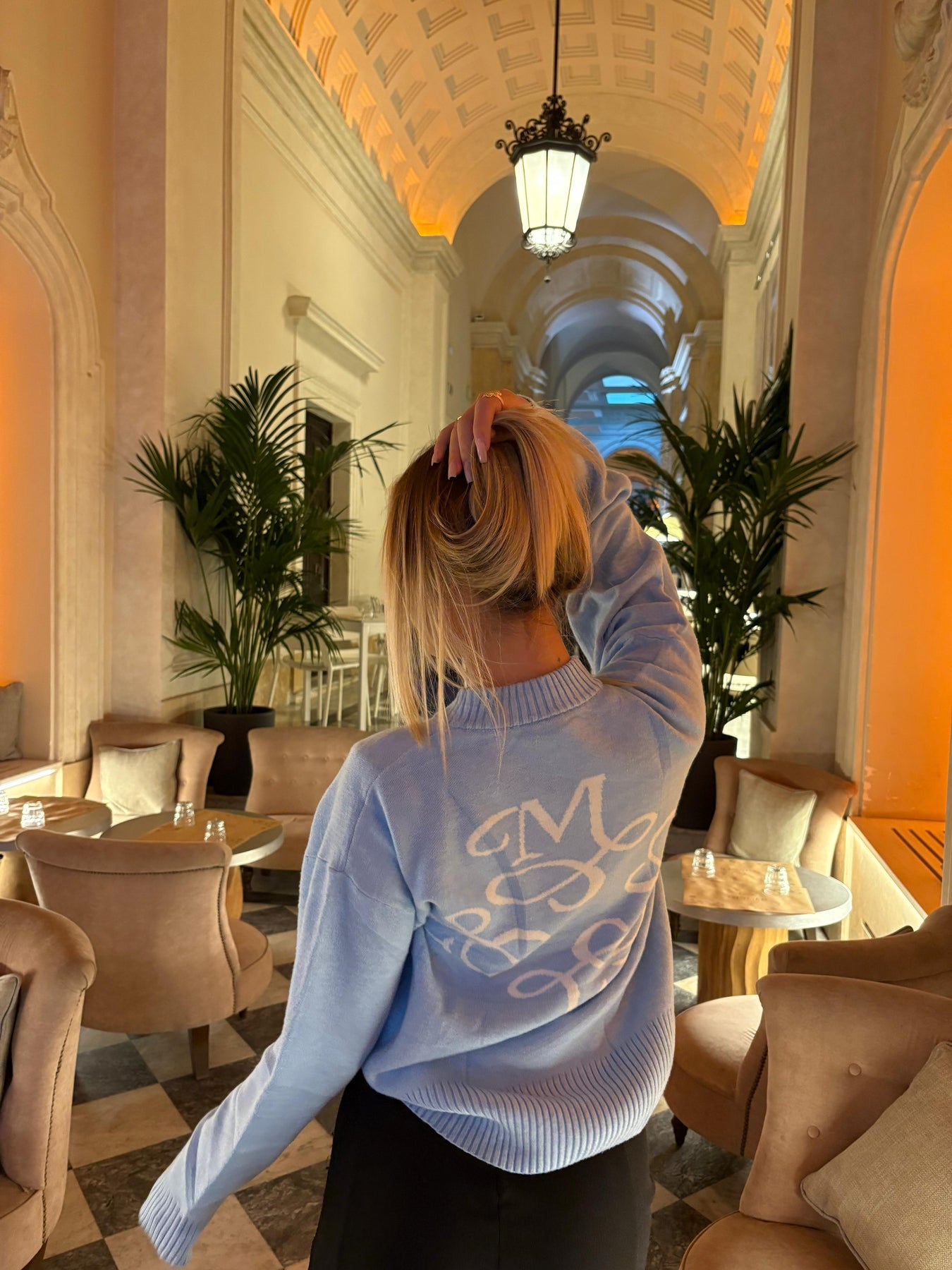 Maglione con vestibilità oversize e logo “M” ricamato sul petto.